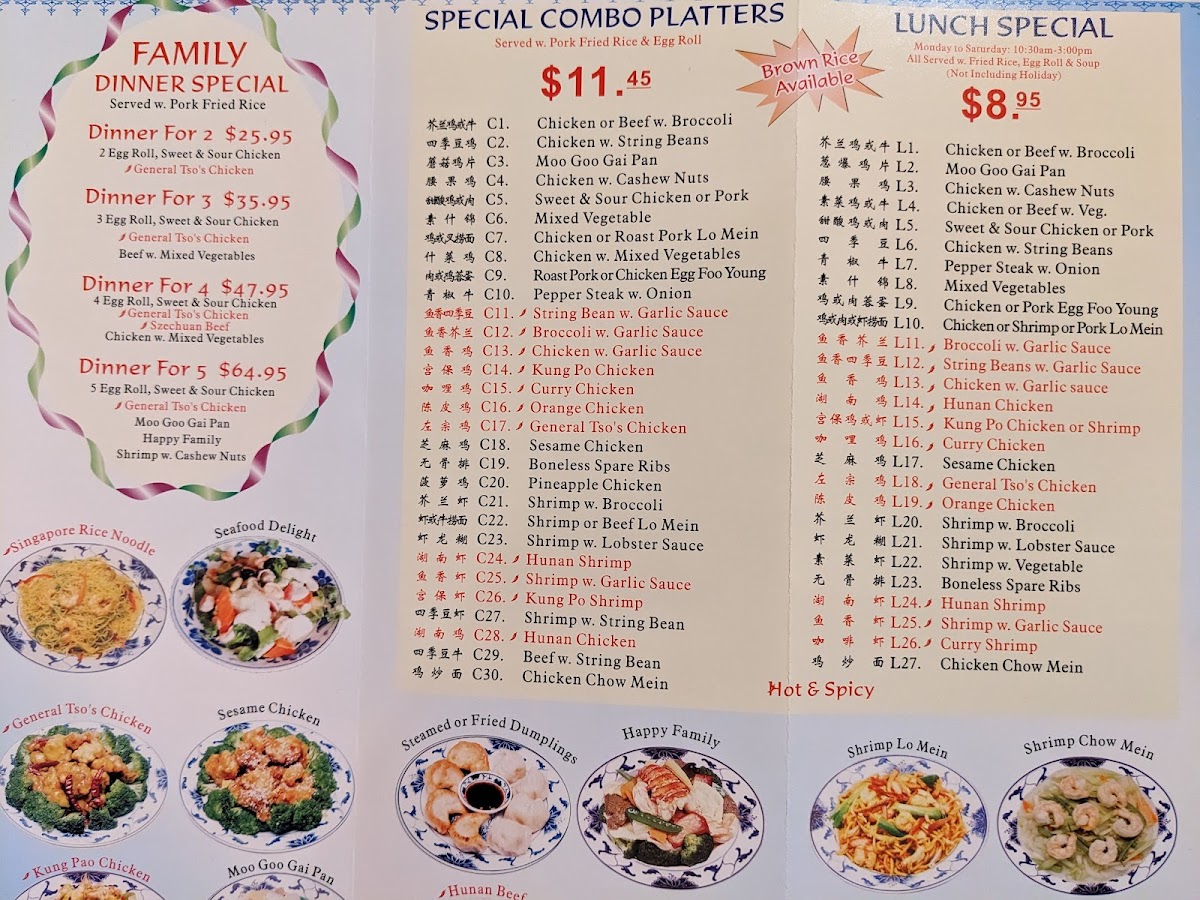On the menu, you’ll find a variety of dishes that range from hearty soups like Egg Drop and Hot Sour Soup to flavorful mains such as Kung Pao Chicken and Honey Walnut Shrimp. These dishes complement the cozy, clean atmosphere of the restaurant, where the pace feels unhurried and the setting is quietly welcoming.