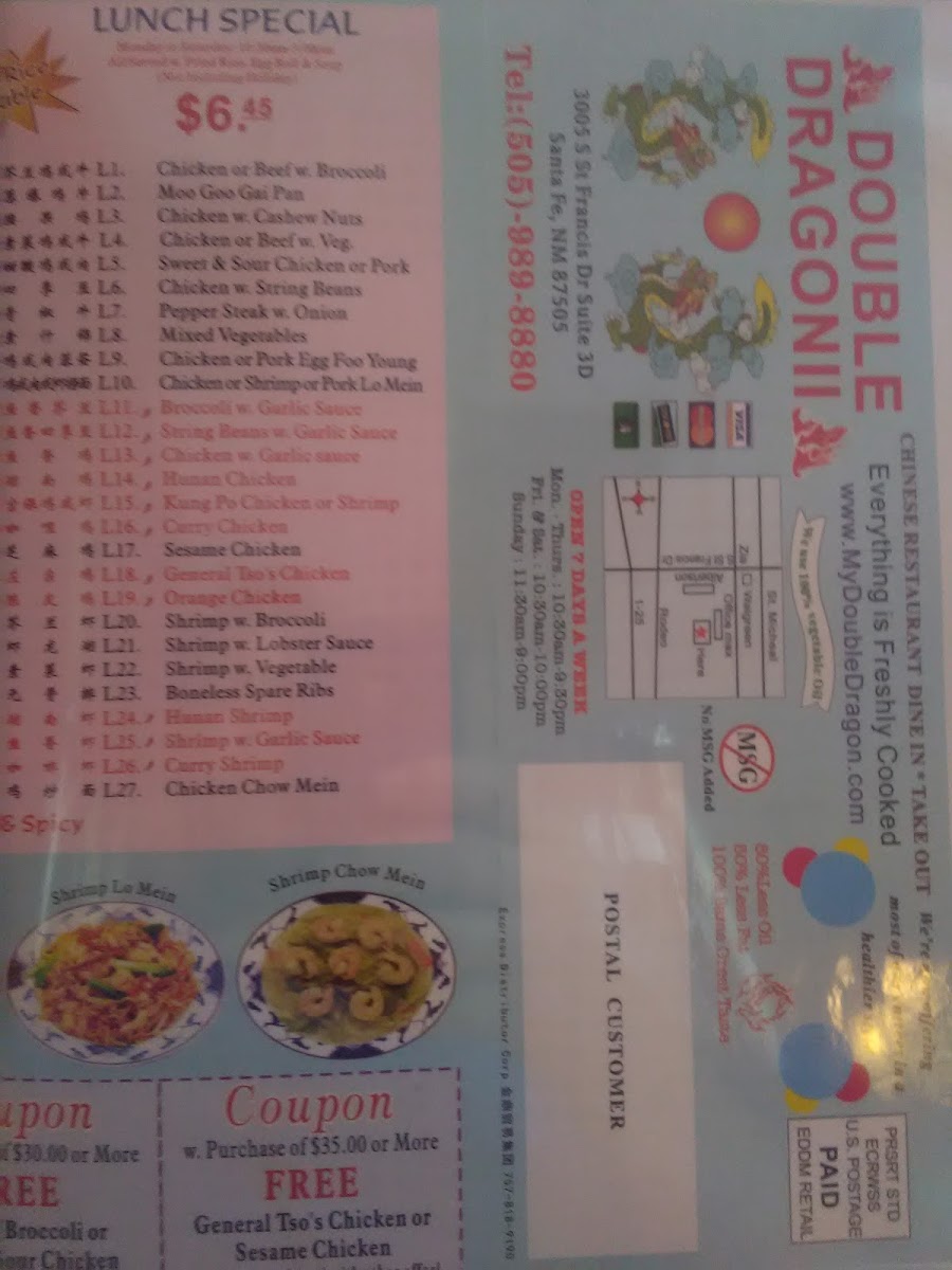 Double Dragon offers a menu that balances familiar favorites with authentic Chinese flavors, creating a comfortable and inviting dining experience. The selection is well-suited for both relaxed lunches and casual dinners, encouraging moments of easy enjoyment whether you're stopping by for a quick bite or a leisurely meal.